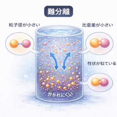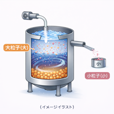 液体中に分散している固体物質を、粒子径の大きなグループと小さなグループに分けることを分級といいます。 遠心分離機を用いて、遠心力によって粒子に作用する力を与え、流量などの条件を調整しながら、基準となる粒子径を狙って分離す[…..]